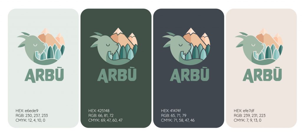 Il logo è costruito attorno a tre elementi simbolici, montagne, alberi e la mascotte Arbù, che rappresentano il legame profondo con la natura, il percorso e la dimensione umana del cammino.