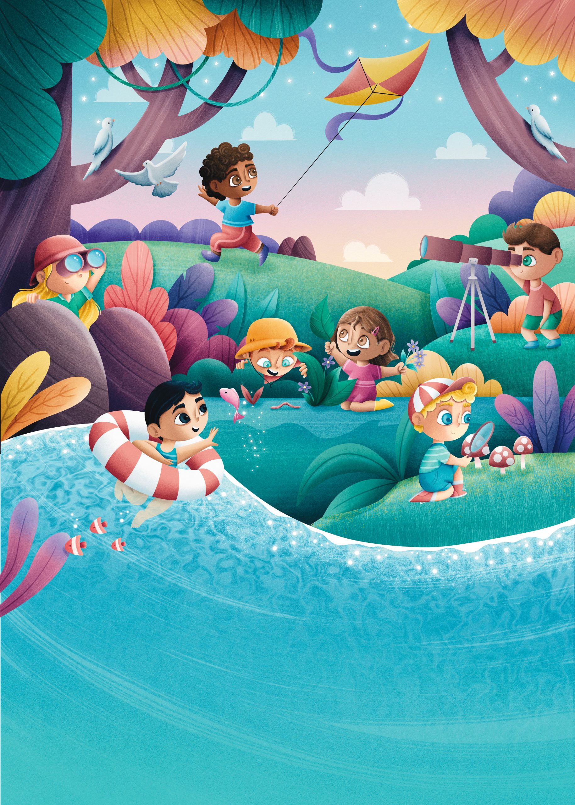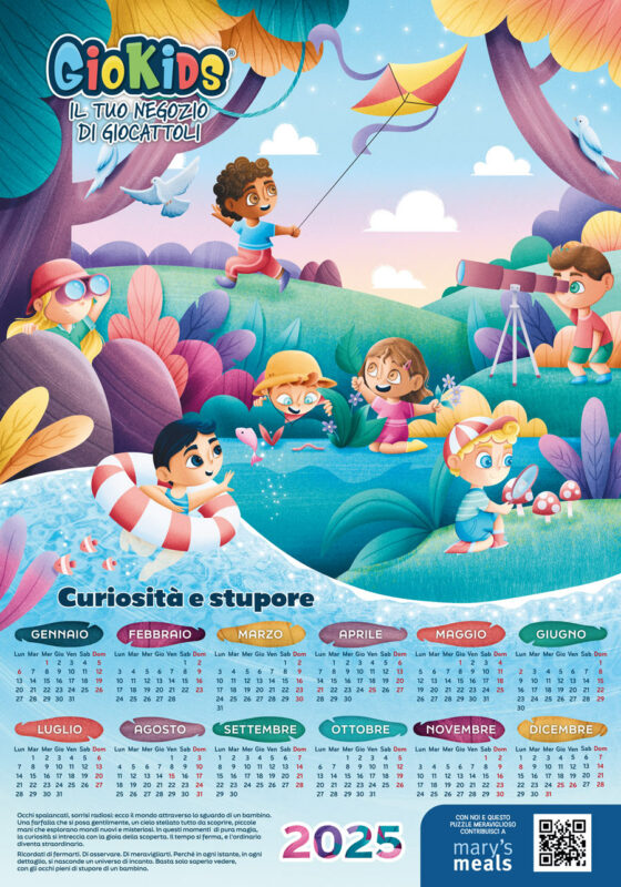 Per Giokids, una grande catena di negozi specializzati in giocattoli, ho realizzato l’illustrazione per il calendario 2025. Il tema dell’anno era “curiosità e stupore”, e la sfida è stata racchiudere in un’unica immagine l’incanto della scoperta visto attraverso gli occhi dei bambini. Attraverso colori e composizione, ho voluto trasmettere quel senso di meraviglia che rende ogni nuova esperienza un’avventura.