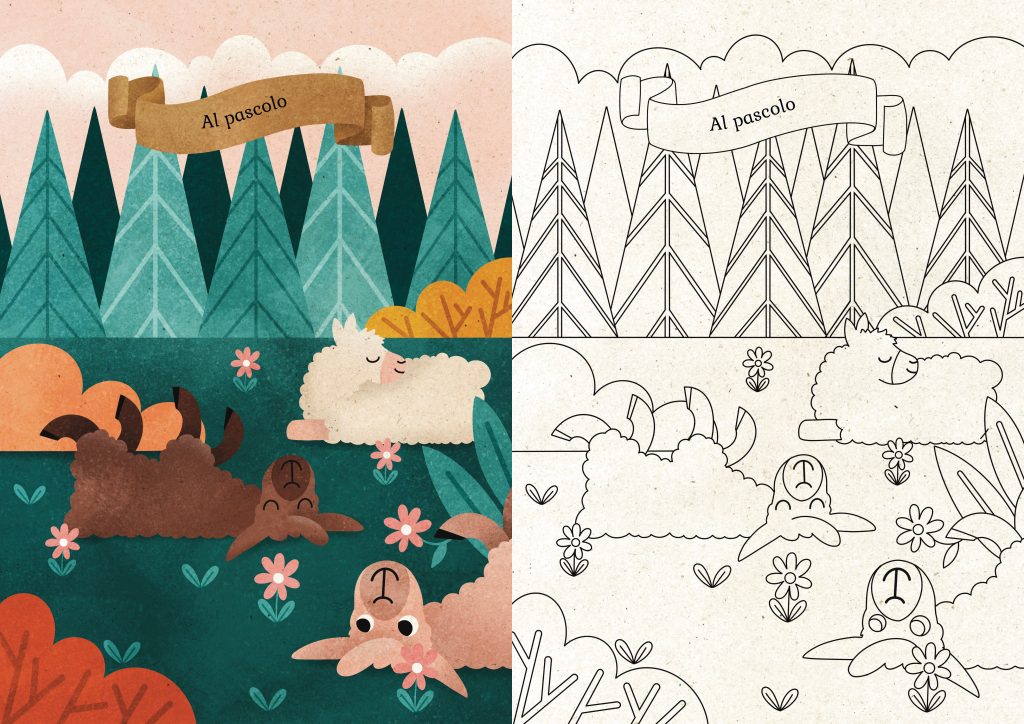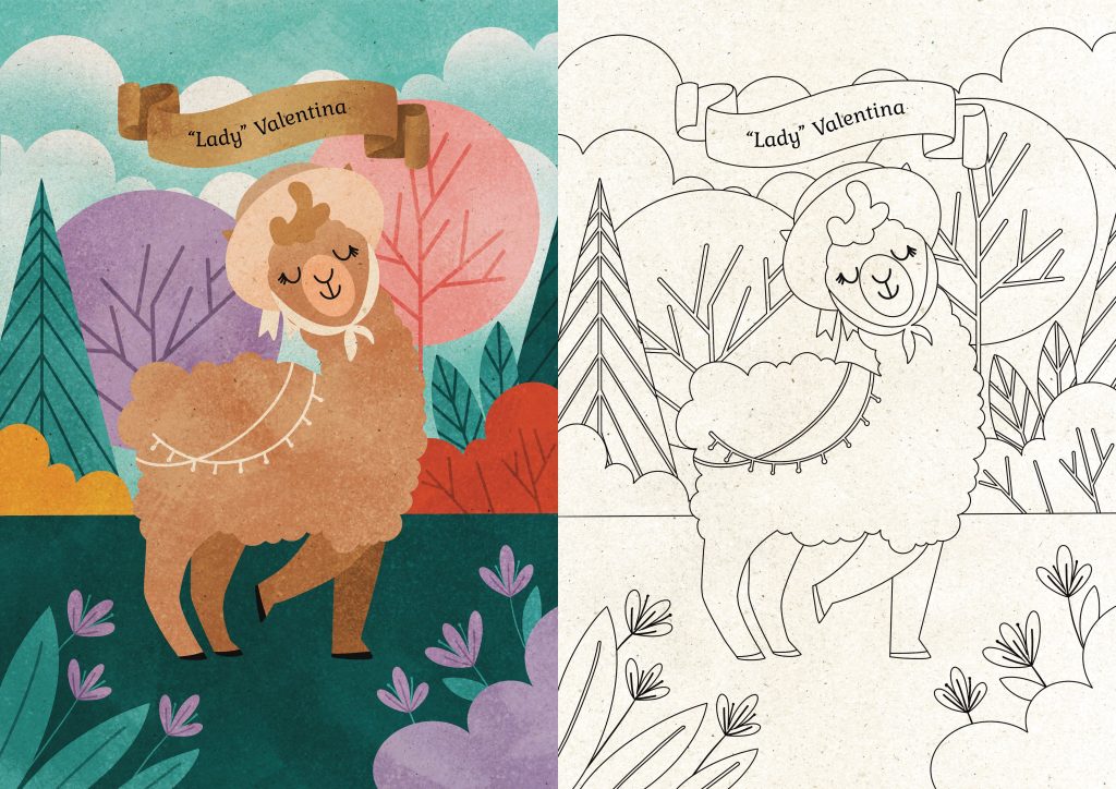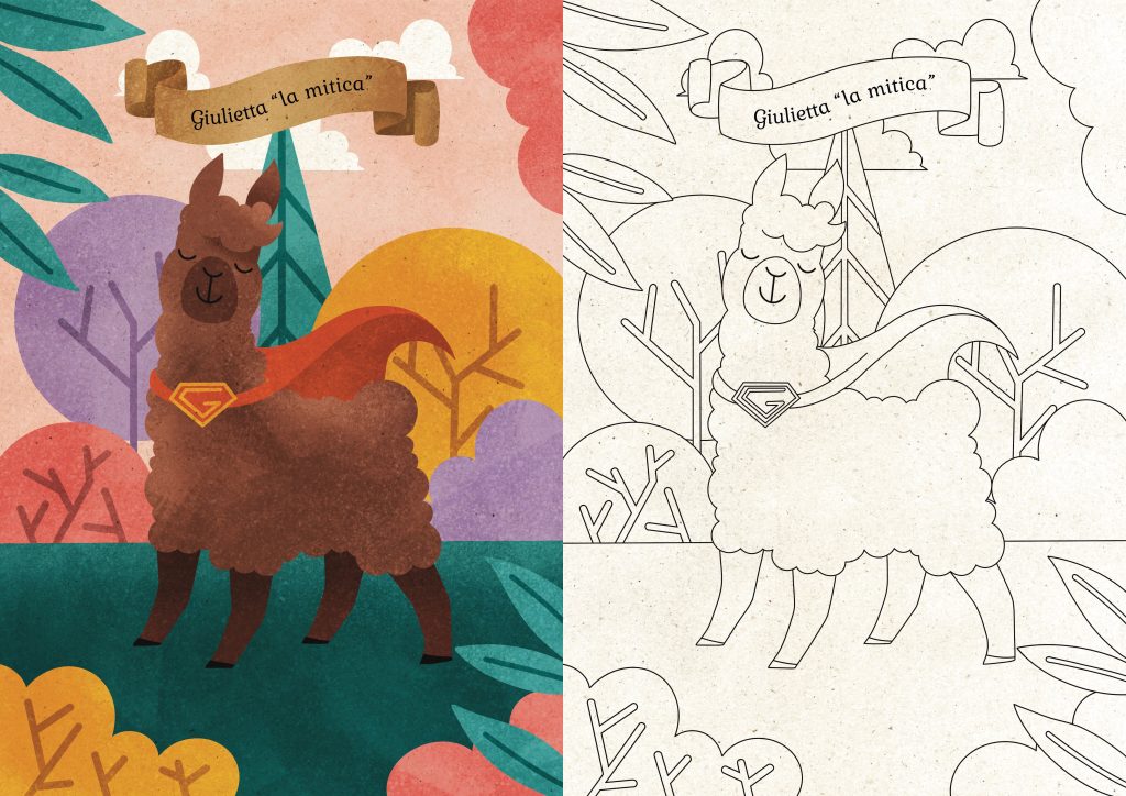 Attraverso un album da colorare, vengono presentati gli alpaca che abitano questo posto magico, ognuno rappresentato con il proprio carattere unico e il suo temperamento.